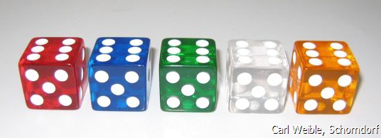 5 Dice Stack Pro Aufsetz Würfel in folgenden Farben: 1 x Artikel 05195-1 rot transparent 1 x Artikel 05195-2 blau transparent 1 x Artikel 05195-3 grün transparent 1 x Artikel 05195-4 klar transparent 1 x Artikel 05195-5 orange transparent