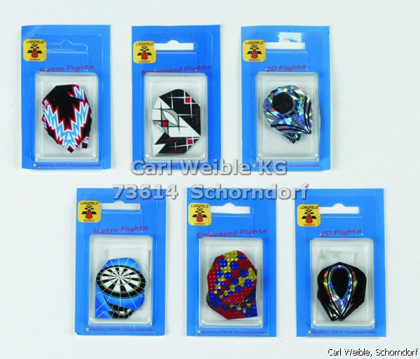 Dart Flights 3 Stück auf Blisterkarte 060100 Metronic, VE 12 Stück sortiert 060101 Embosser, VE 12 Stück sortiert 060100 2D, VE 12 Stück sortiert