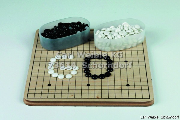 Go Spiele komplett, MDF Brett mit Echtholzfurnier, bedruckt, Glassteine in schwarz und weiß, Kartonverpackung schwarz250413 Brettgröße 34 x 34 cm250414 Brettgröße 47 x 47 cm