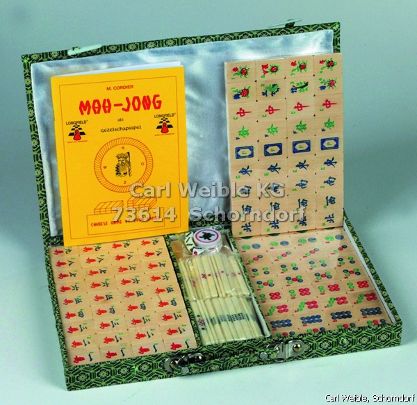 250400 Mah-Jangg aus Kunstharz mit Zählstäbchen, Steingröße 30 x 21 mm, in original chinesischem Seidekoffer (Bild oben)