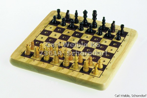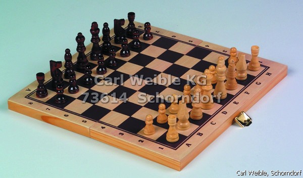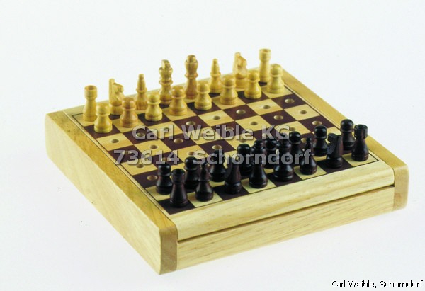 Steckschachspiel Steckschachspiel aus Massivholz, bedruckt, aufklappbar, Größe 13 x 13 cm mit Holzfiguren 21 mm, Geschenkkarton 200701