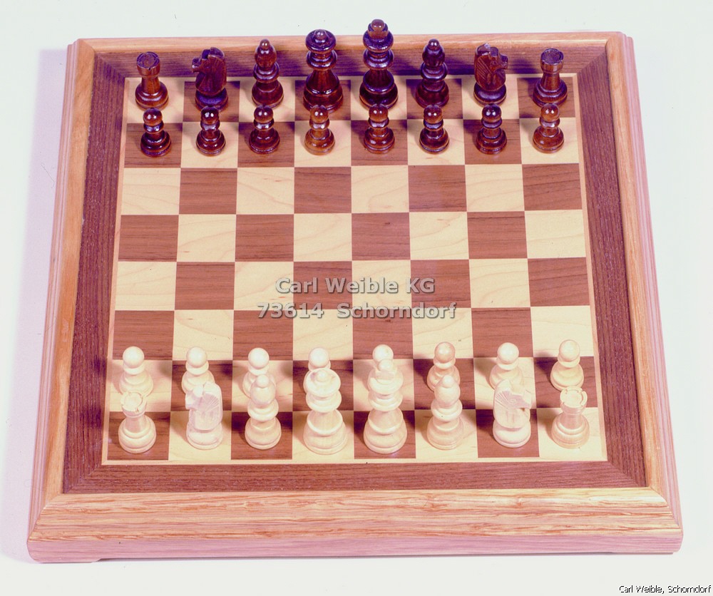 Schachspiel Schachspiel Intarsie, Schachfiguren aus Ahorn braun und natur, lackiert, mit Filz, Königshöhe 80 mm, Schachbrett Nussbaum und Ahorn Intarsie mit Profilholzrand, Größe 40 x 40 cm, Feldgröße 38 mm, Geschenkkarton 150230
