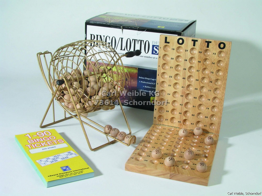 Bingo SetBingo Set klein, ca. 20 cm KorbMit Kontrollbrett aus Holz, faltbar600 Bingo TicketsIn vierfarbigem Geschenkkarton360567
