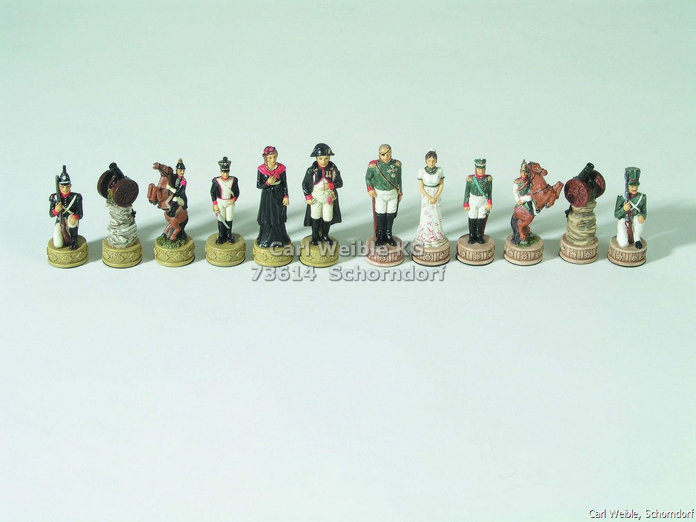 Schachfiguren „Russland/Frankreich” Schachfiguren aus gemahlenem Stein, Poly Resin, handbemalt mit Filz, in Kartonverpackung 01874