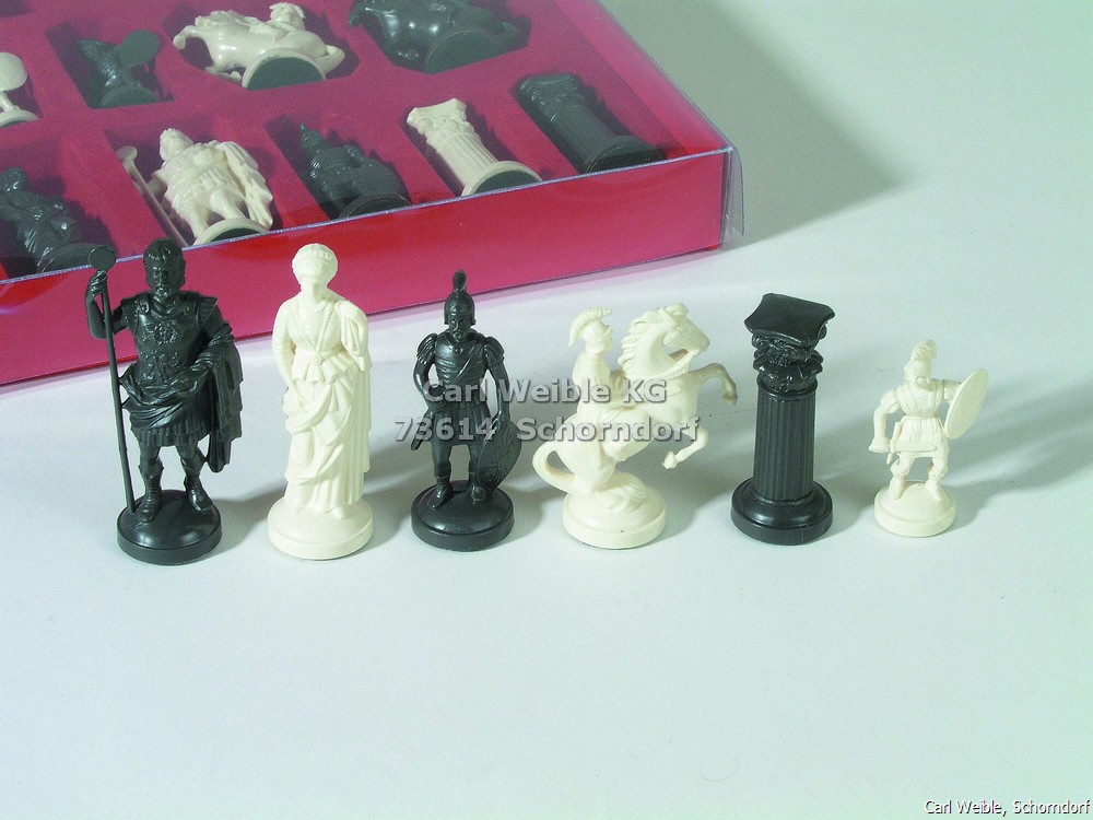 Schachfiguren „Römer” Schachfiguren Kunststoff, schwarz und weiß, mit Filz, in Karton 01923