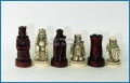 Schachfiguren „Isle of Lewis“ Nachbildungen der Figuren welche auf der Isle of Lewis an der Westküste Schottlands gefunden wurden, Die Originale befinden sich in Museen in London und Edinburgh. Es gilt nicht als sicher, dass es sich bei diesen Figuren um ein Schachspiel nach heutiger Spielweise handelte, da mehr als 32 Teile gefunden wurden, Der Turm bei den Figuren 01820 wurde von den Künstlern des Herstellers hinzugenommen, Gemahlener Stein mit Kunstharz gebunden, rotbraun und natur, mit Filz, in schönem Kartonetui mit Velourseinlage 01820 Königshöhe 64 mm