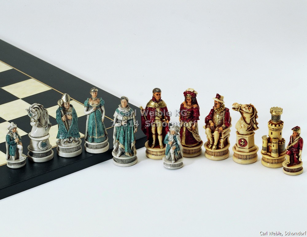 Schachfiguren „Mittelalter“ Gemahlener Stein mit Kunstharz gebunden, handbemalt, in Kartonverpackung 01846 Königshöhe 117 mm