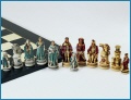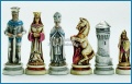 Schachfiguren „Schlacht von Camelot“ Der Kampf von König Arthur gegen die Rebellion im eigenen Land, angeführt von seinem Neffen Modred. Gemahlener Stein mit Kunstharz gebunden , fein handbemalt, in Kartonverpackung 01845 Königshöhe 115 mm