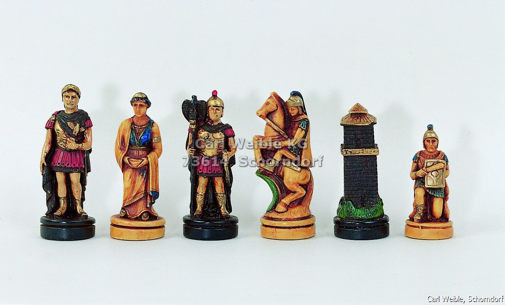 Schachfiguren „Römer“ Gemahlener Stein mit Kunstharz gebunden ,handbemalt, in Kartonverpackung 01841 Königshöhe 80 mm