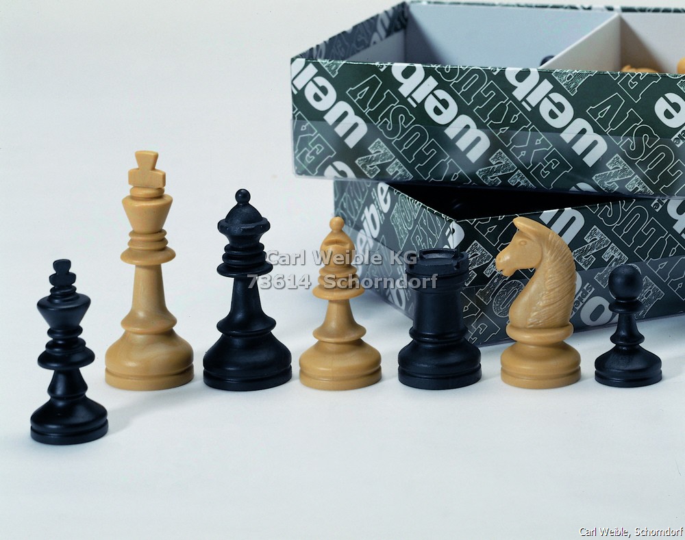 Schachfiguren Stanunton-Form Kunststoff, schwarz und beige im Klarsichtkarton 01010 Königshöhe 55 mm 01012 Königshöhe 74