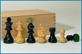 Schachfiguren Staunton-Form Buchbaum, schwarz gebeizt und natur poliert mit Filz und doppeltem Blei, schöner handgeschnitzter Springer, in Buchekassette 01373 Königshöhe 76 mm 01373 Königshöhe 95 mm, turniergeeignet