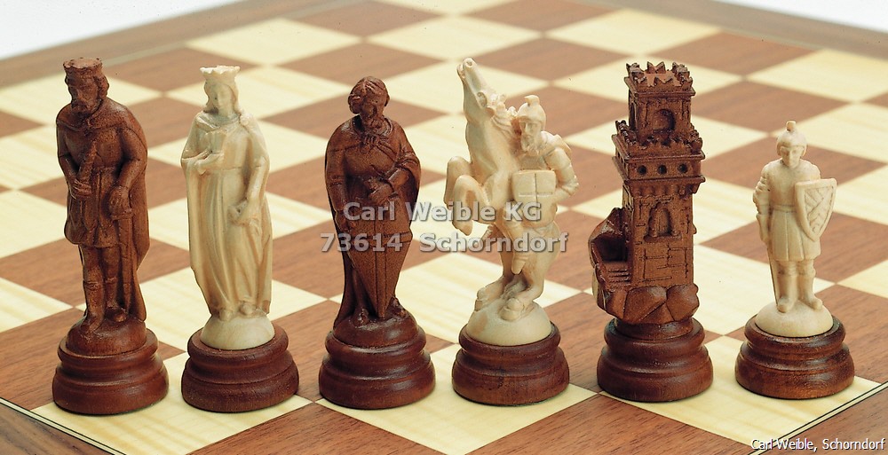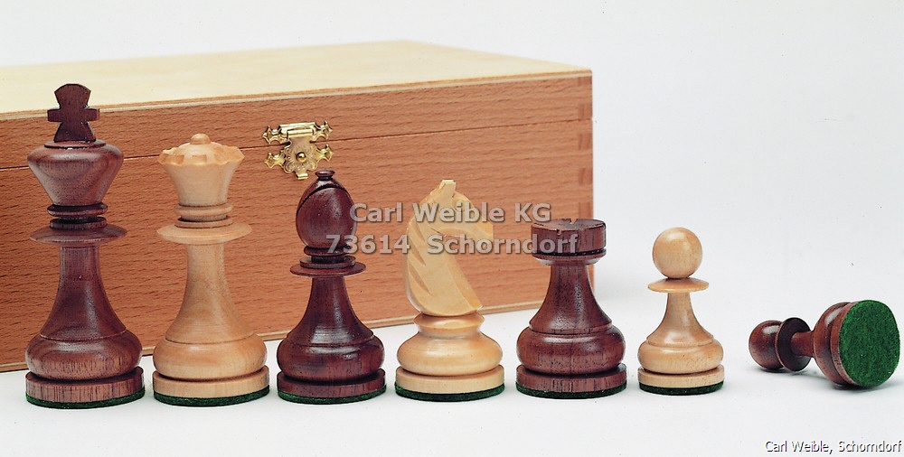 Schachfiguren Staunton-Form Nussbaum und Ahorn, lackiert mit Filz und Blei, handgeschnitzter Springer, in Buchekassette 01353 Königshöhe 76 mm 01354 Königshöhe 83 mm 01355 Königshöhe 89 mm