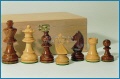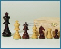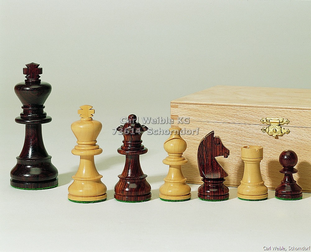 Schachfiguren „Tournament“ Palisander und Buchsbaum, poliert, mit Filz und doppeltem Blei, schöner handgeschnitzter Springer, in gebeiztem Massivholzkasten 01606 Königshöhe 95 mm, turniergeeignet