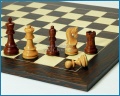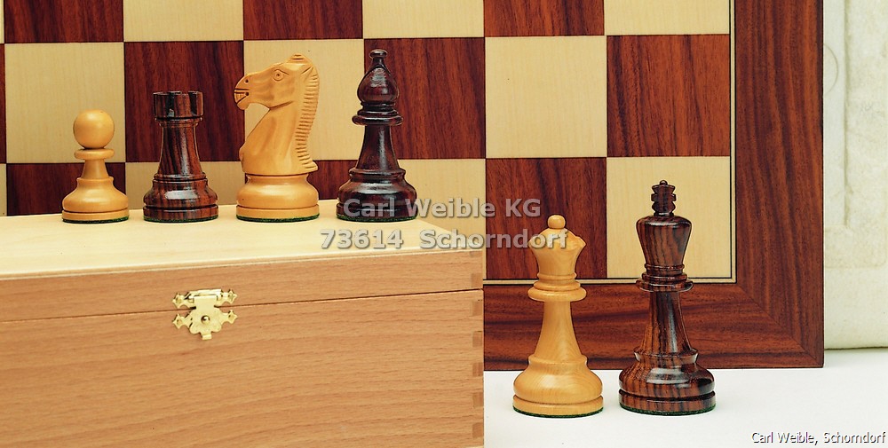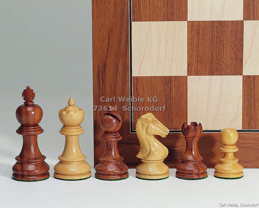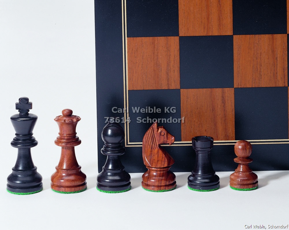 Schachfiguren Staunton-Form Palisander und Buchsbaum, poliert mit Filz und Blei, handgeschnitzter Springer, in Buchekassette 01552 Königshöhe 70 mm