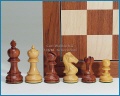 Schachfiguren „American Style“ Palisander und Buchsbaum, poliert, mit Filz und doppeltem Blei, schöner handgeschnitzter Springer, in Buchekassette 01600 Königshöhe 90 mm