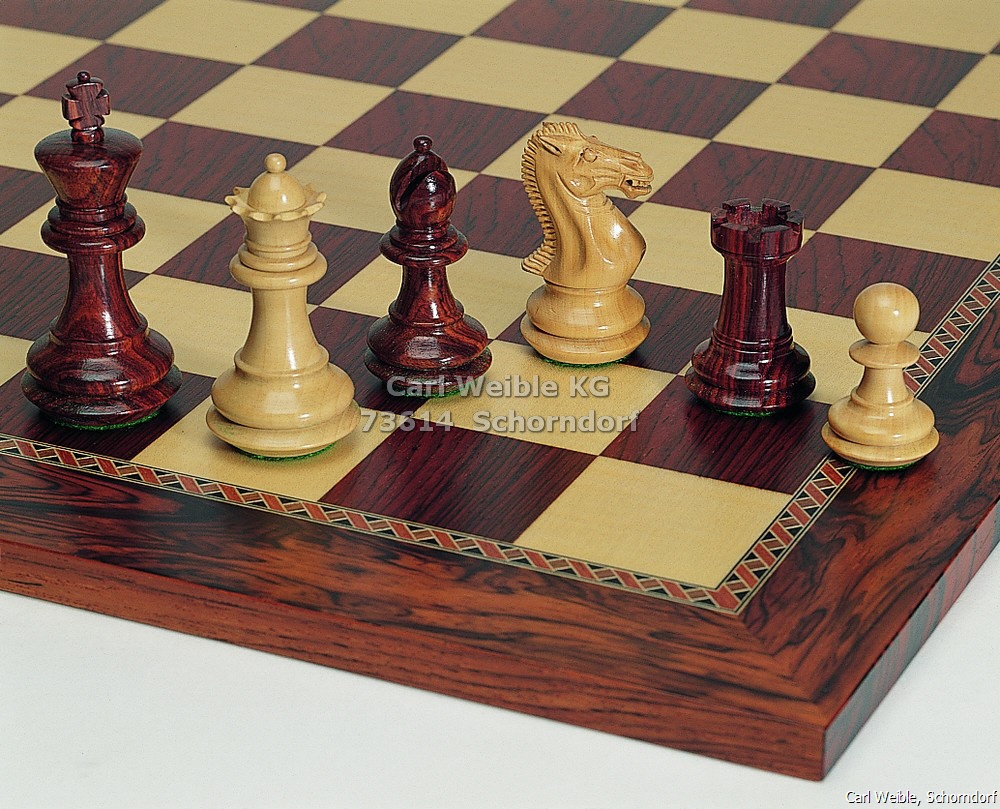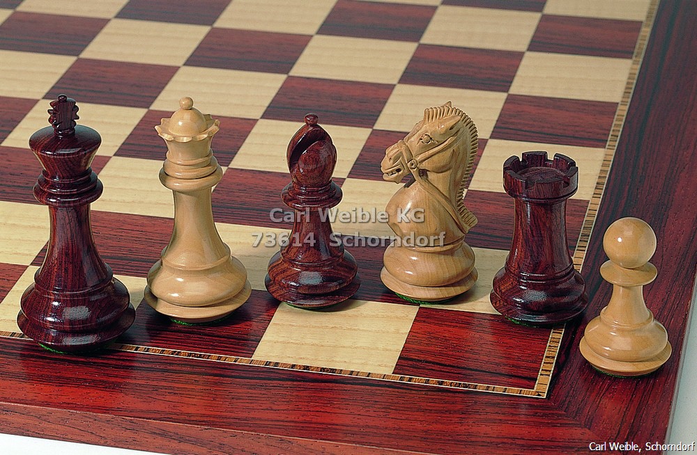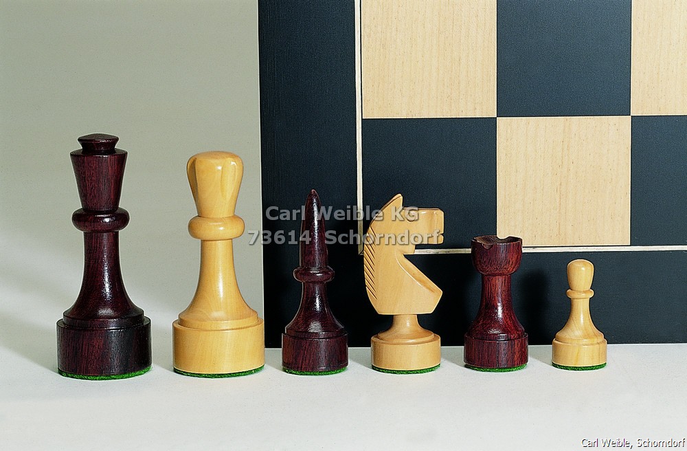 Schachfiguren Staunton-Form Palisander und Buchsbaum, poliert, mit Filz und Blei, handgeschnitzter Springer, in Buchekassette 01552 Königshöhe 70 mm 01553 Königshöhe 76 mm 01554 Königshöhe 83 mm 01556 Königshöhe 95 mm, turniergeeignet 01558 Königshöhe 108 mm