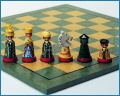 Schachfiguren handbemalt Schöne Bauernmalerei aus Ungarn, grün und gelb, mit Filz, in Etui mit Velourseinlage 01671 Königshöhe 83 mm