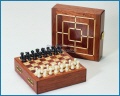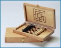 Steckschach- und Mühlespiel Mahagoni und Ahorn, Intarsie, 03025 Kunststoff-Figuren, 11 x 11 cm